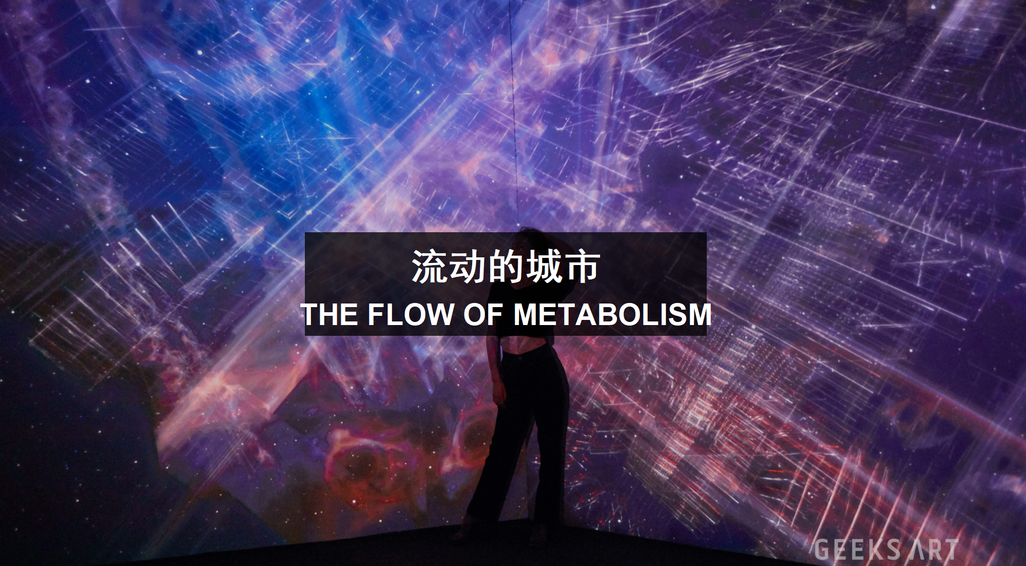 万事万物都有生命,这个生命并不是我们理解的”有机体“的表面含义,而是其流动的本质,一切都是在不断变化之中的。生命周期是以“新陈代谢”的速度被我们感知到的,这些生命加在一起的总和,就是我们朝夕相处与之共生的生态环境。现代文明根植于城市环境,因此我们所熟悉的风景也不再是河流山川,而是高楼建筑,我们眼前风景的新陈代谢的速度是如此之快,让人怀疑脑海中对这座城市的记忆的真实性。编写的程序会使画面中的建筑进入一个解构到重构的过程,图案会用线条和粒子构成城市建筑,对城市进行重构,解构,迭代。仿佛就像是里尔克另外一首诗里说的那样:“我们只是路过万物 像一阵风吹过 万物对我们缄默 仿佛有一种默契。”