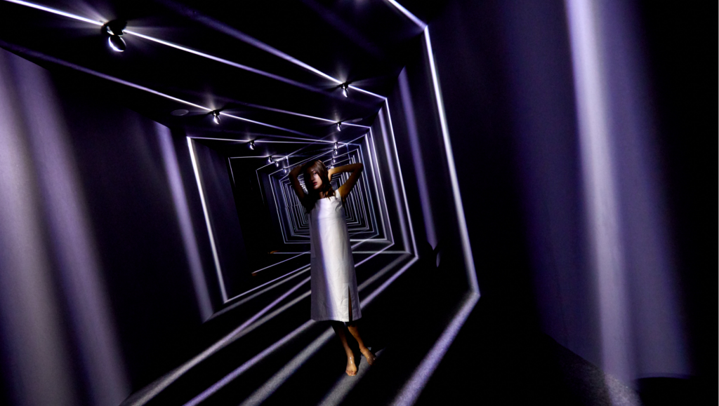 伴随着光影的切割与呼吸声的耳语,这条幽深的隧道引领着我们走向那扇穿梭意识维度的知觉之门。正如阿道司·赫胥黎((Aldous Huxley)那部同名的经典之作的隐喻。在黑暗尽头,即将开启一场充满未知和不确定的感官旅程。