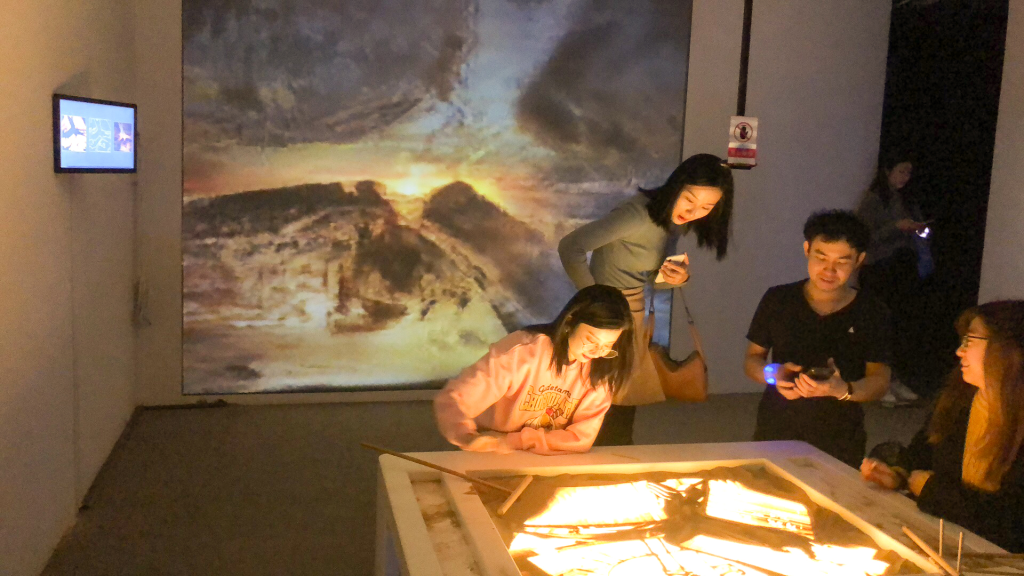 互动方式:观众在沙画上画画,对应的投影上有画面的变幻