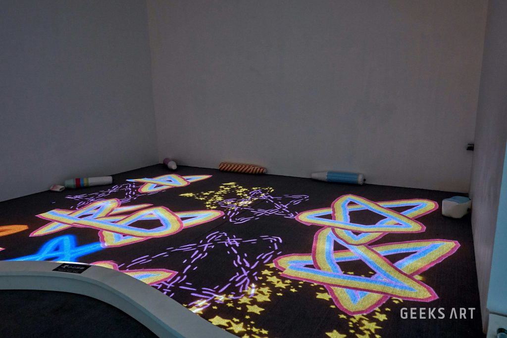 互动方式:观众在作品上走动,可以触发画面效果做出相关的图像变幻