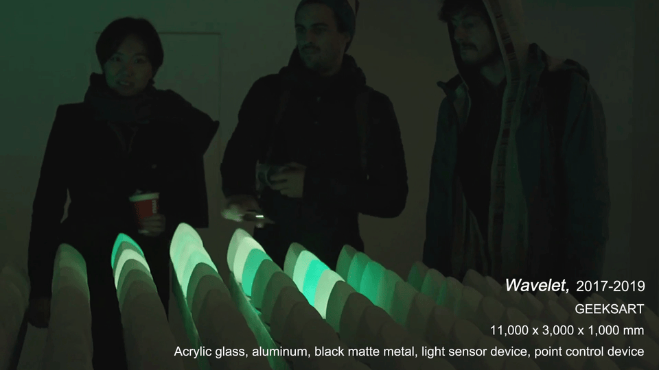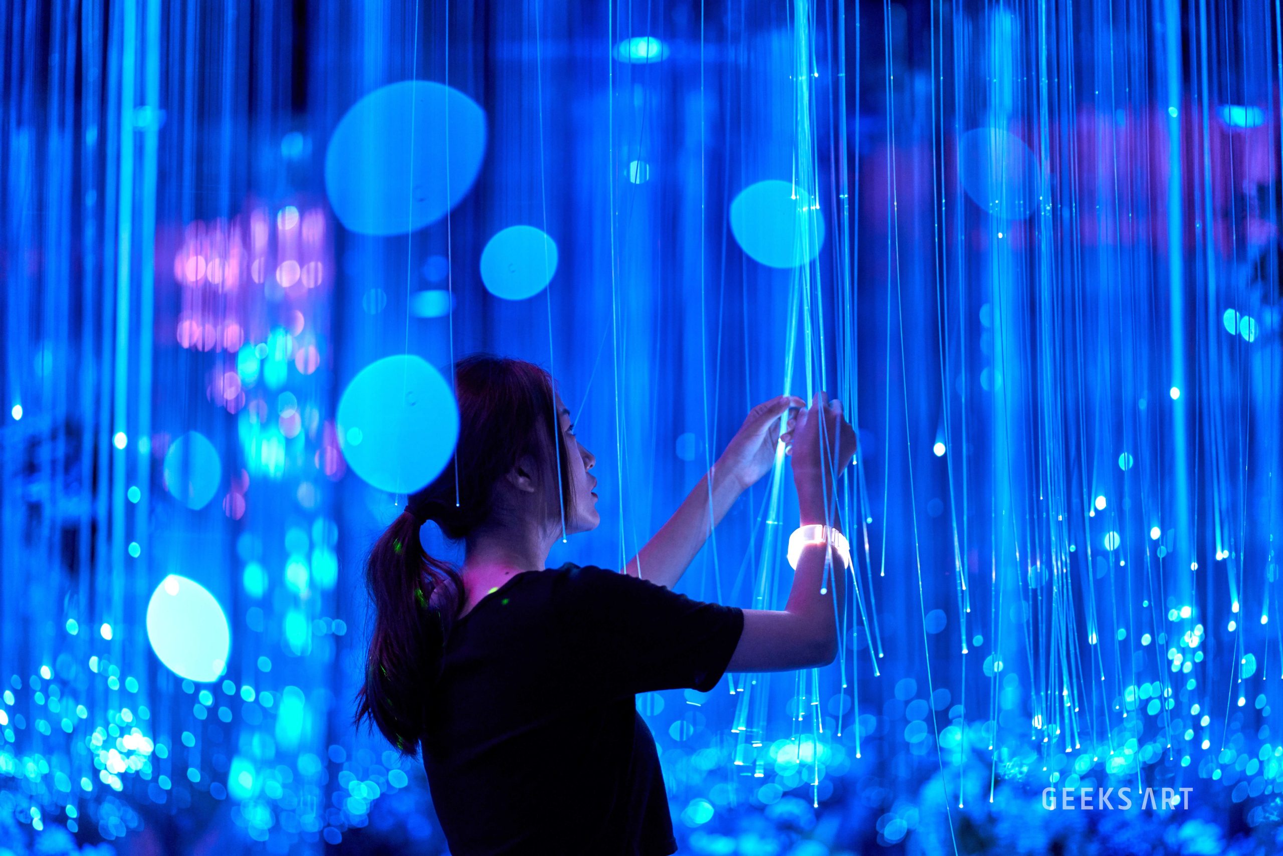 互动方式:观众在靠近作品的时候, 会有”萤火虫”跟随观众