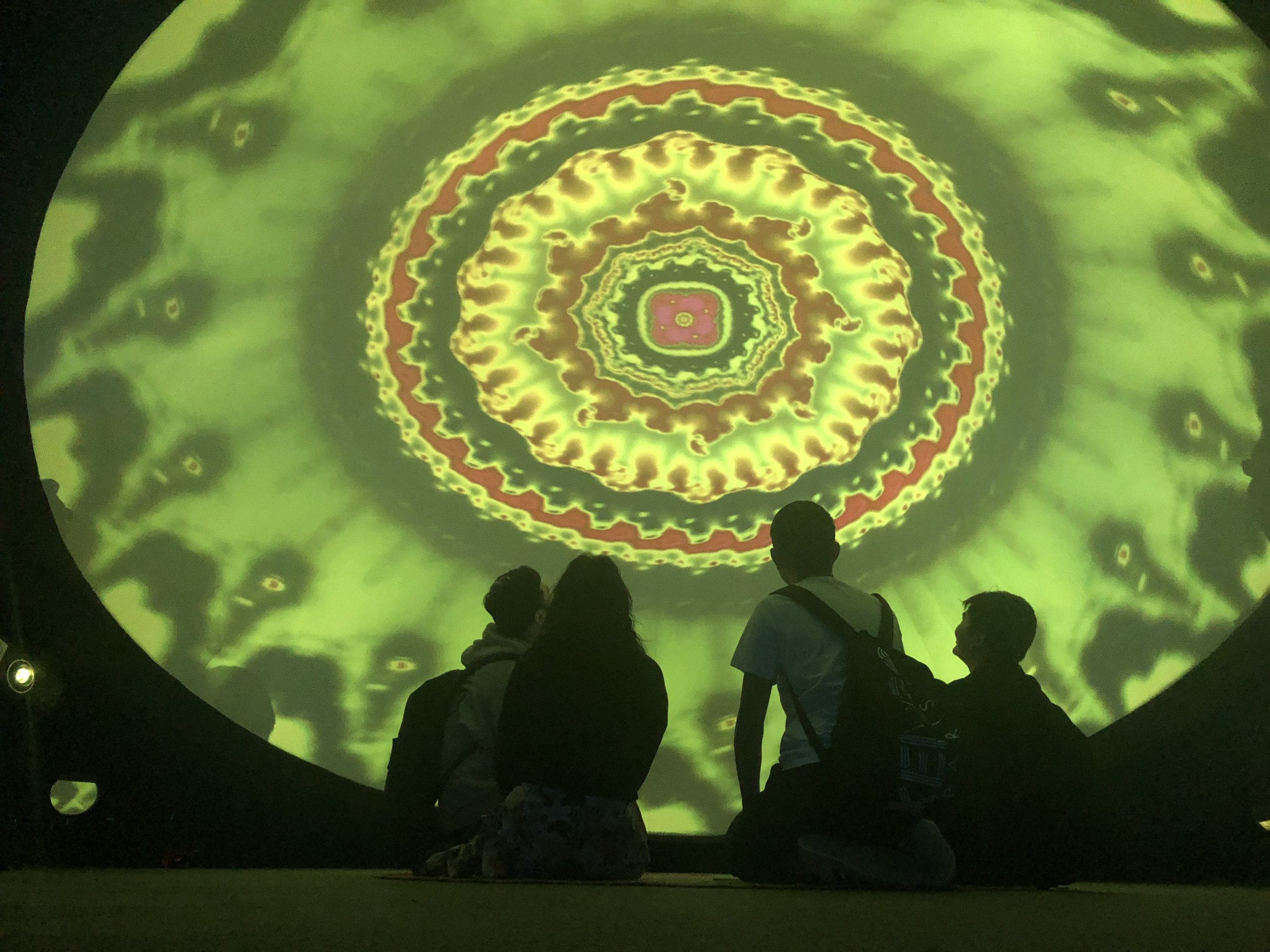 美是宇宙之间最真挚最崇高的存在,它表达在数学的对称性上,物理的精确性上,表达在万物生灵的精妙神奇之中,表达在每一个生命的尊严之中。艺术做为一种心灵转化的体验,目的是带给人们“美的惊骇”。象征“宇宙”的曼陀罗、唐卡里的以“须弥山”为中心的坛城、教堂的彩绘玻璃窗,古埃及的生命之花、以及神圣几何…几乎所有的古老文明里都用数学分形的方式解释了宇宙。而数学就是宇宙源头的语言。我们用穹顶的方式赋予观众沉浸式的直观经验去感受数学之美,声音与画面的通感联觉,让彼此互为补充,破除着观众头脑思维所依赖的对于世界的认知模式,随之进入思维减弱而潜意识活跃的“冥想状态”,让我们身心彻底的舒缓放松得以疗愈。这是一个基于脑神经科学理论的“艺术治愈”的疗程,我们邀请你舒舒服服地半躺下来,享受我们为你们布置放松平静的氛围,把一切抛在脑后。只需要凝视着穹顶不断变幻的曼陀罗,一起进入这段平行宇宙的奇幻之旅吧。