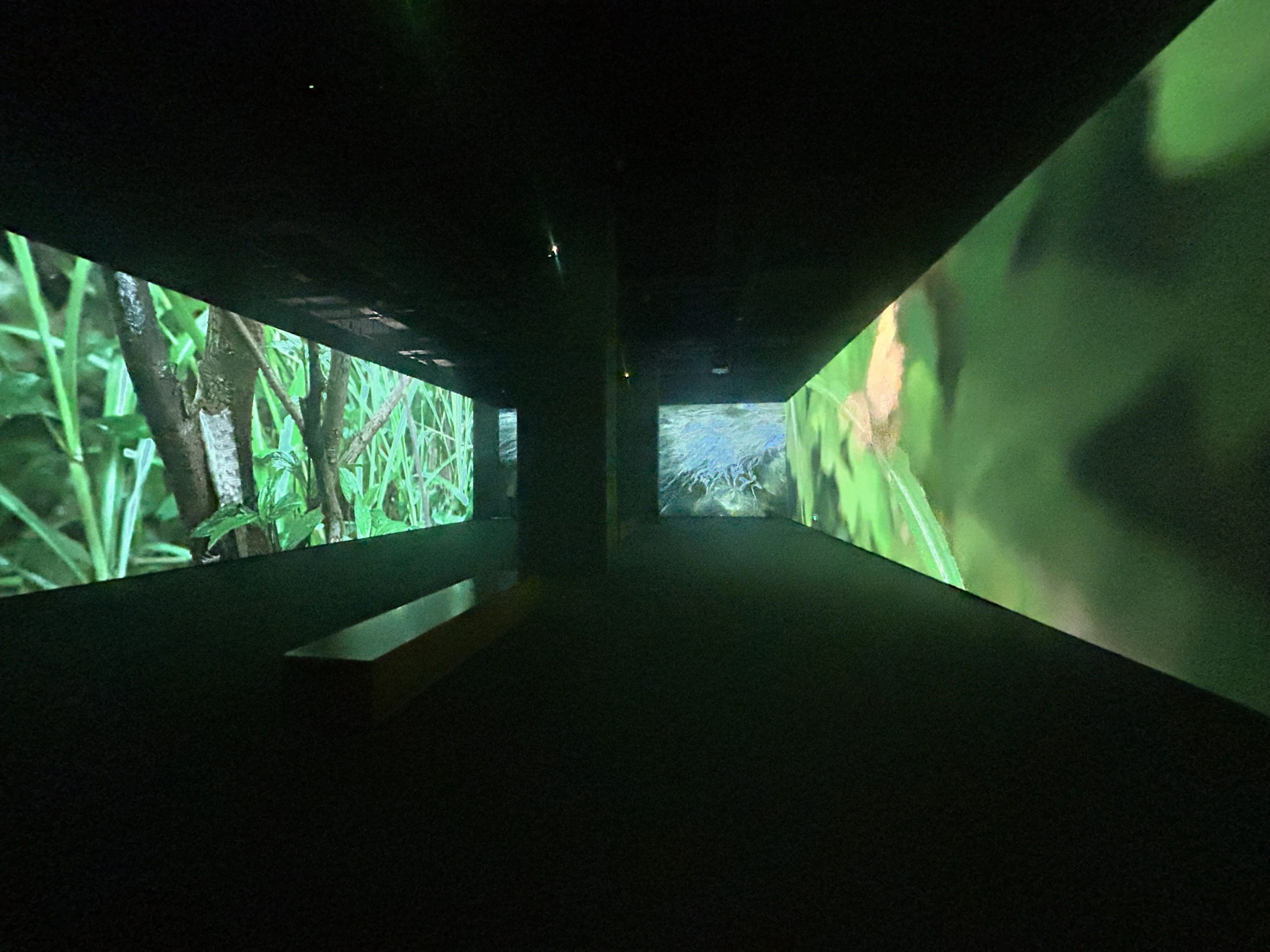 ▲ 第一篇章:林中一日、3屏影像、6’34”、2024-2025
