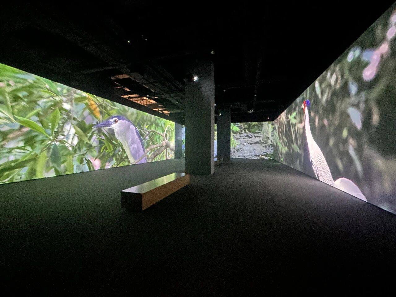 此外,展览还通过声音等多感官元素,增强了观众的沉浸感。在第二篇章《此心安处》,在影像展示的同时,播放着丛林的自然声音,如鸟鸣、风声和流水声,营造出身临其境的听觉体验。