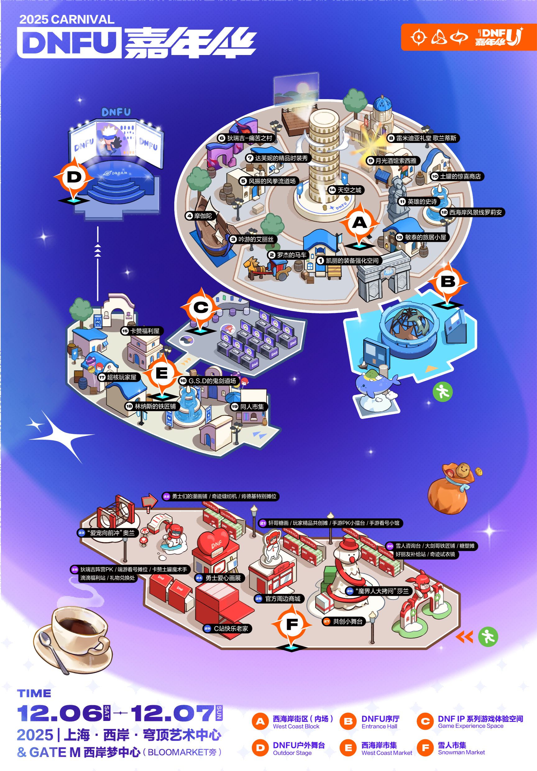 更多精彩节目敬请期待后续信息,12月6日-12月7日,DNFU嘉年华邀请所有勇士于上海西岸度过特别的“西海岸的一天”!