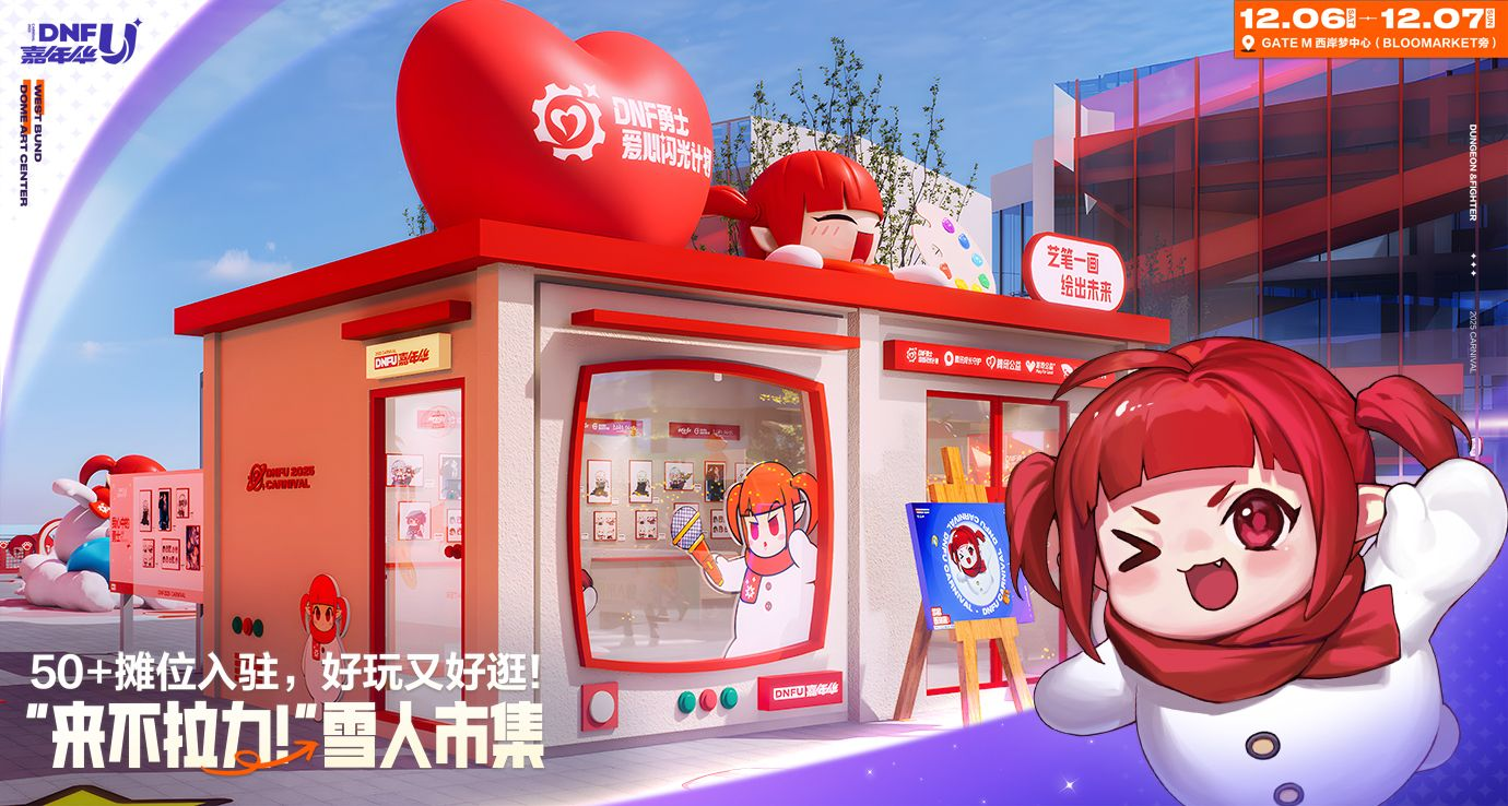 更有四款DNF IP游戏试玩、卡赞新品预约屋等摊位精彩营业。