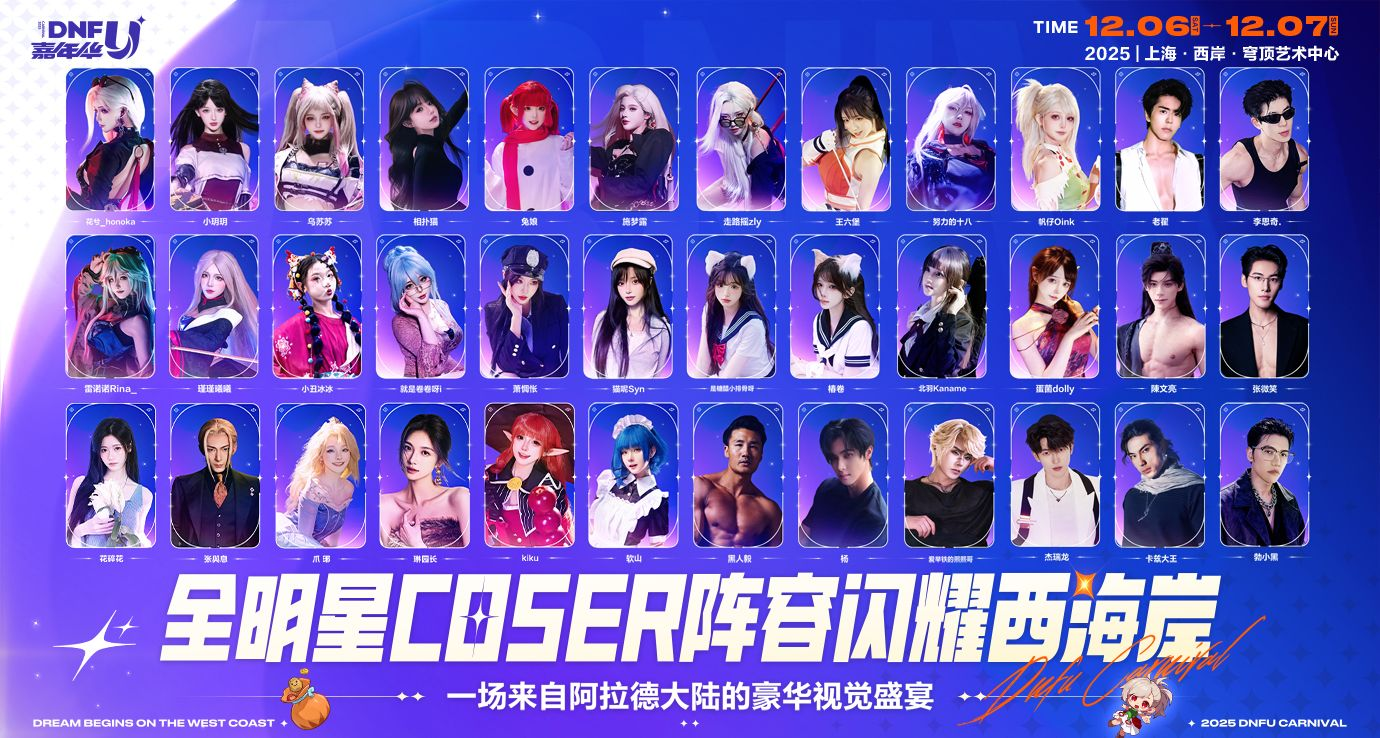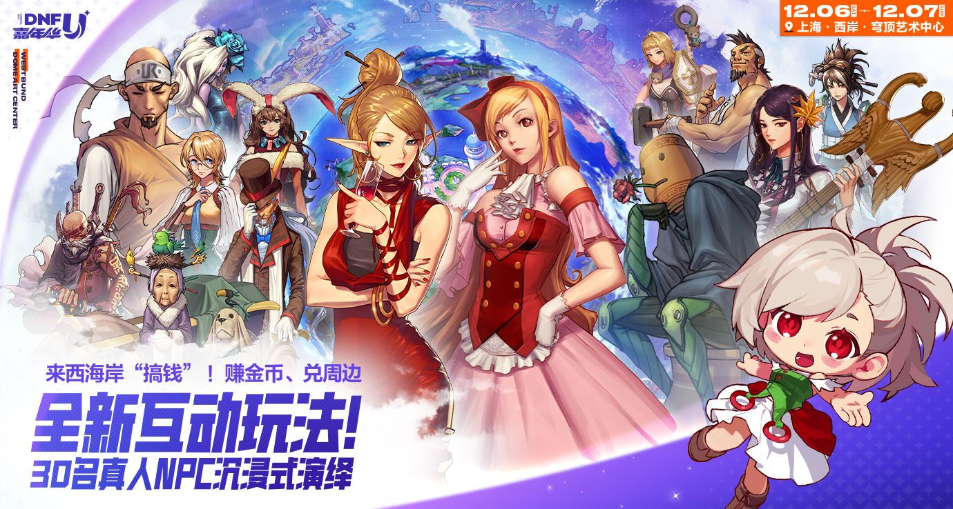 欢迎来到西海岸!2025年12月6日-12月7日,DNFU2025嘉年华将在上海西岸·穹顶艺术中心盛大开启!在为期两天的体验中,勇士们能沉浸体验真实还原的“西海岸”等三大主题区域,与30+真人NPC互动,搞钱、升级、赚金币!阿拉德世界降临上海,沉浸之旅,邀你同行!