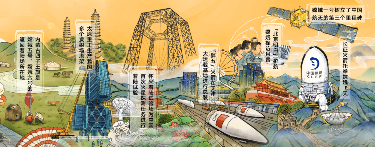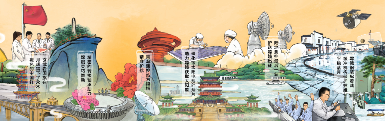 这幅长达20米的手绘交互画卷,以科技为骨,山河为脉,精选探月工程的重要元素与典型地标精心编织,系统展现了全国34个省级行政区在深空探测事业中的贡献与成就。画卷生动地描绘出“举国之力”的真实场景,每一个地区的力量都在探月工程中得以体现。作为国家级重大科技项目,探月工程凝聚了全国各地的智慧与资源,不仅仅是某一座城市或单一机构的胜利,而是全国34个省区市携手共创的伟大事业。