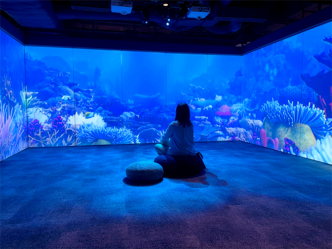 在探索国际化的路径方面,GEEKSART受IDG邀请,协同香港大学图书馆运营团队、港大建筑师及太古海洋研究院,联手在港大图书馆打造了名为“In the Depth of Seven Seas”的海洋主题展览。这是一个模拟海洋生物的运动轨迹和高度还原海底色彩、充满艺术气息的海洋主题展馆。伴随着与香港合作方的展览实践,GEEKSART将以香港为跳板,借力开拓东南亚市场,扩展市场容量,将未来更多优质的内容带给不同地域的观众。
